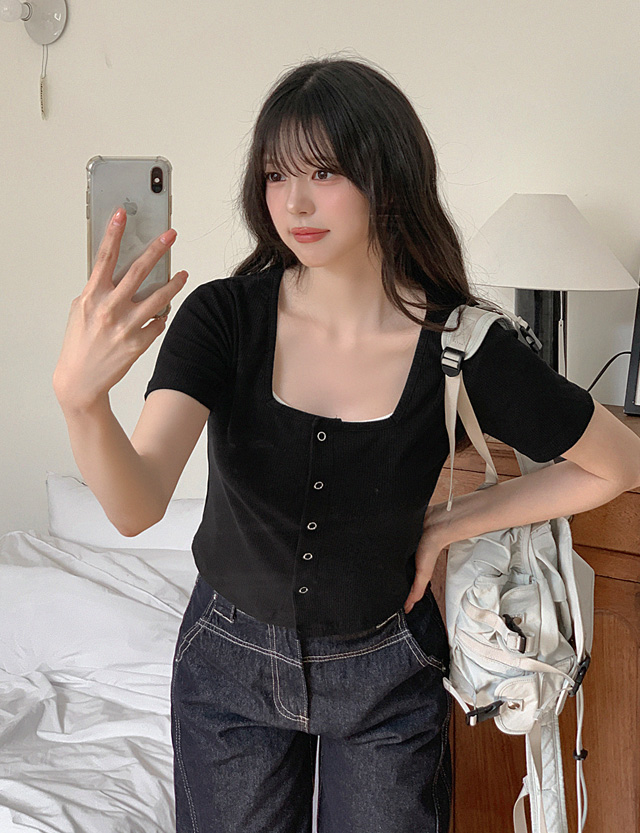 시원한 느낌을 주는 스퀘어 넥 라인