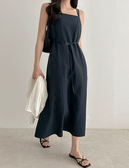 로에나 Linen Belted Sleeveless shirts Long One Piece 87223
