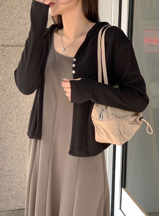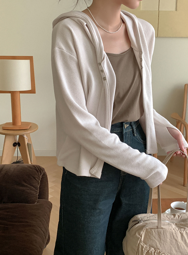 글램 Corrugated Crop Hood Cardigan 71771