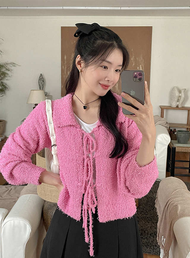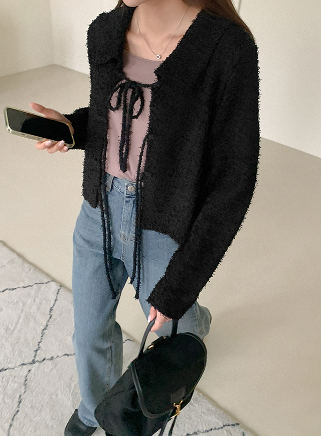 [김하윤 PICK] 파푸아 bowknot Crop Knit Cardigan 72281