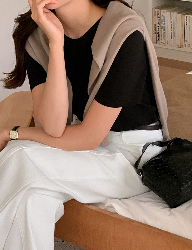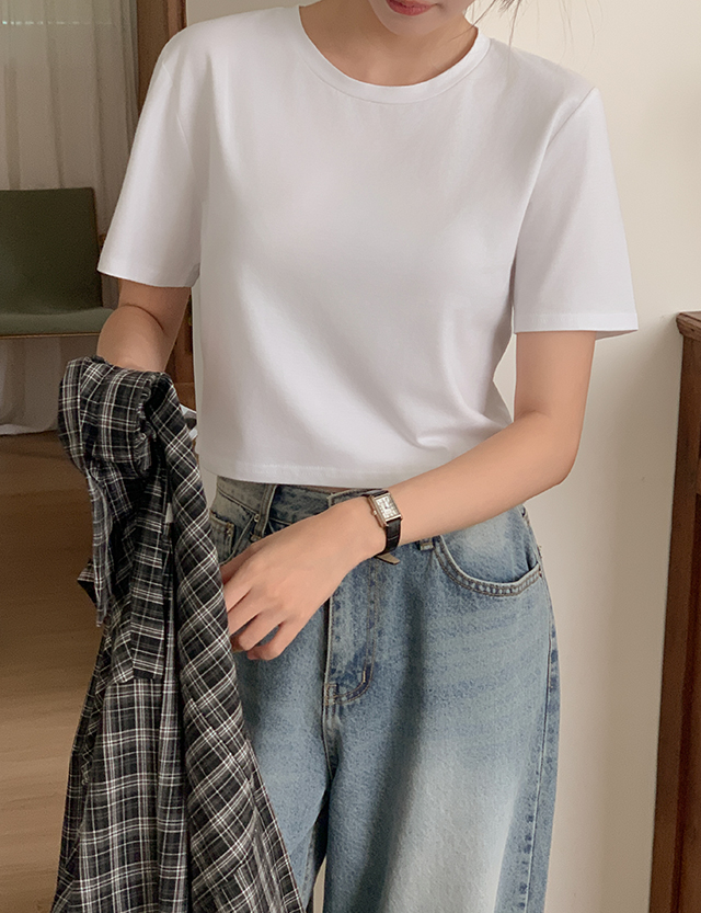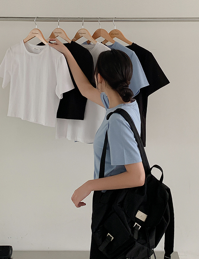 [주문폭주] 활용도 좋은 Crop&미디 Short-sleeve T-shirt 74586