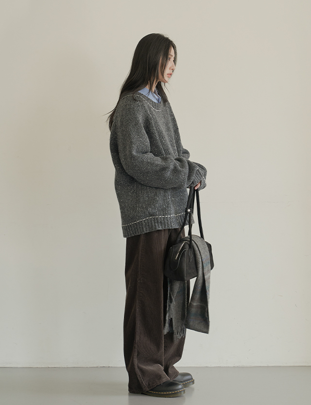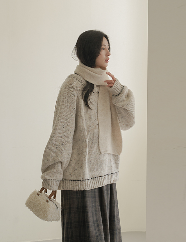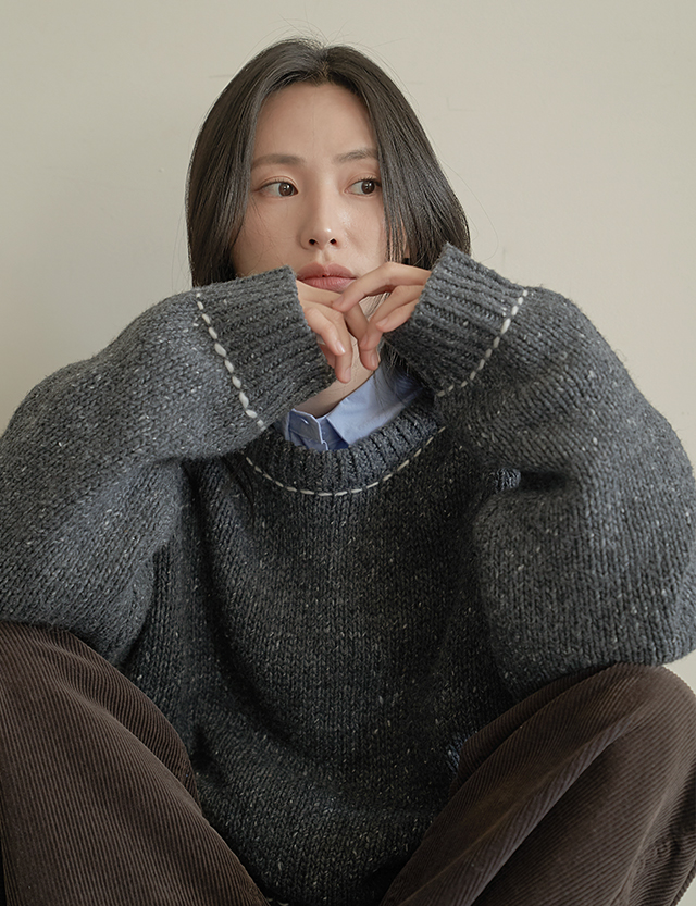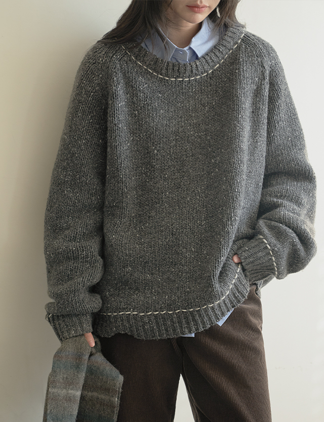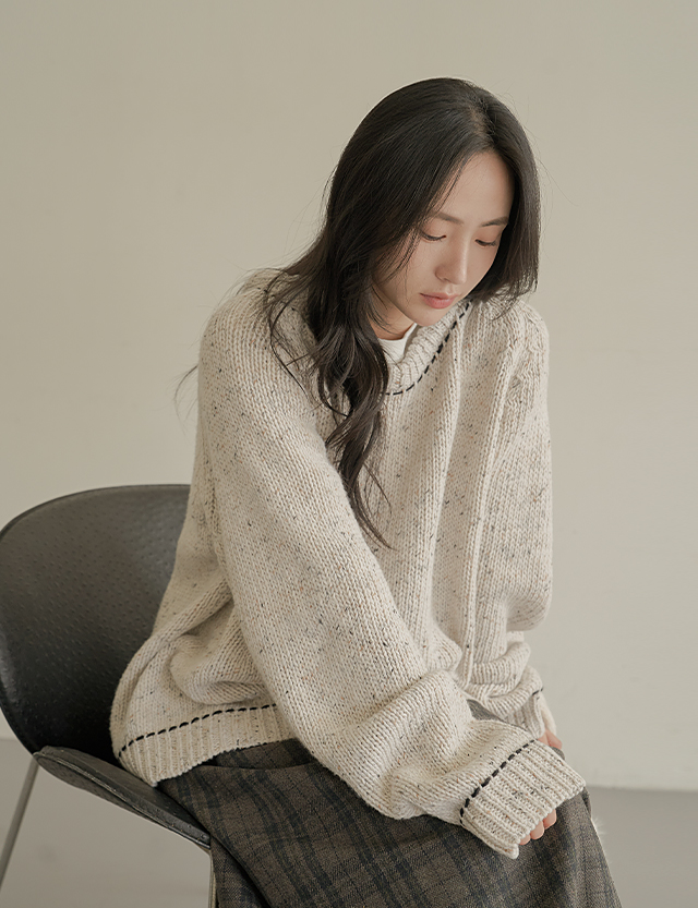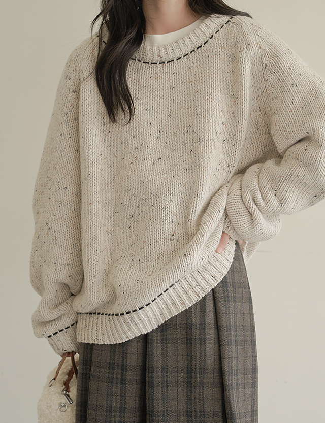 트렝 Round color combination stitch loose fit 보카시 Knit 78875