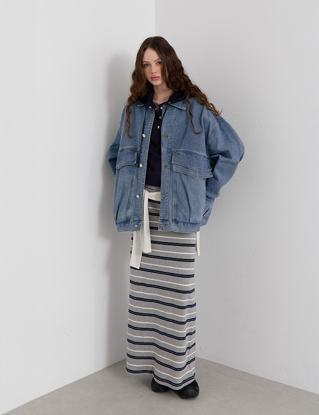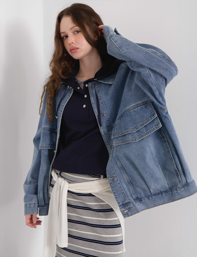 츄딩 large 포켓 loose fit Denim Jacket 80487