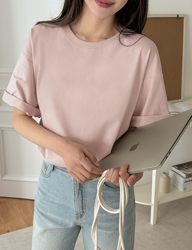 촉촉하고 소프트한 Raund neck Short-sleeve T-shirt 80968