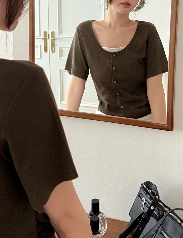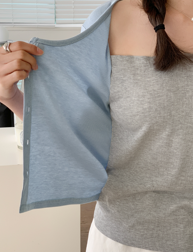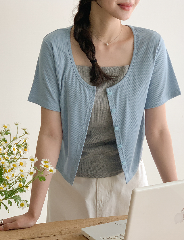 콜라보 color combination layered Cardigan T-shirt 81286