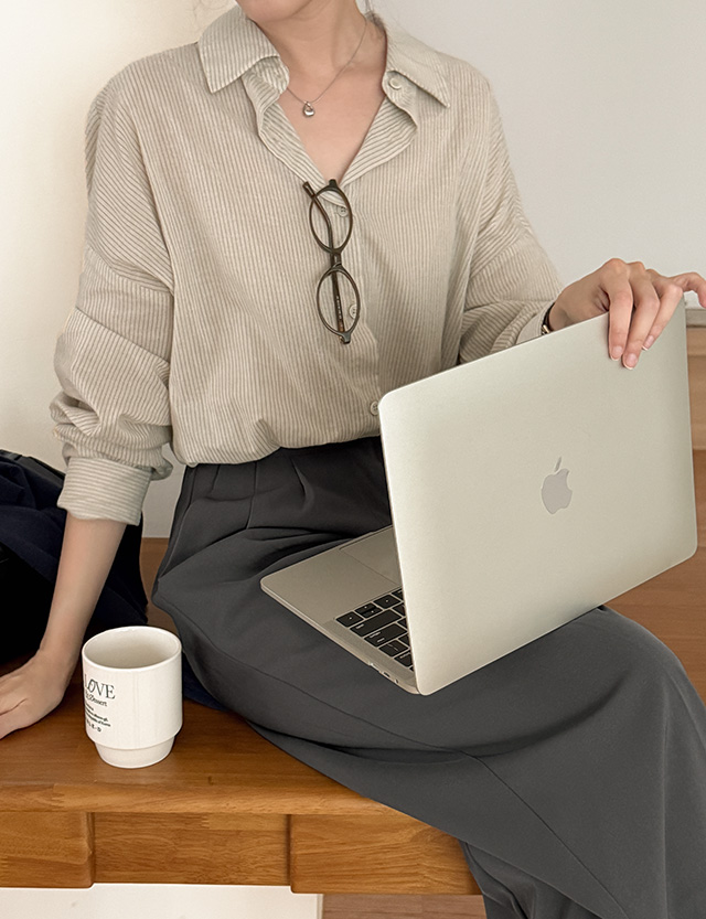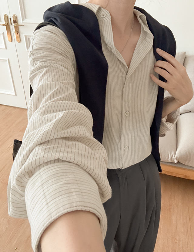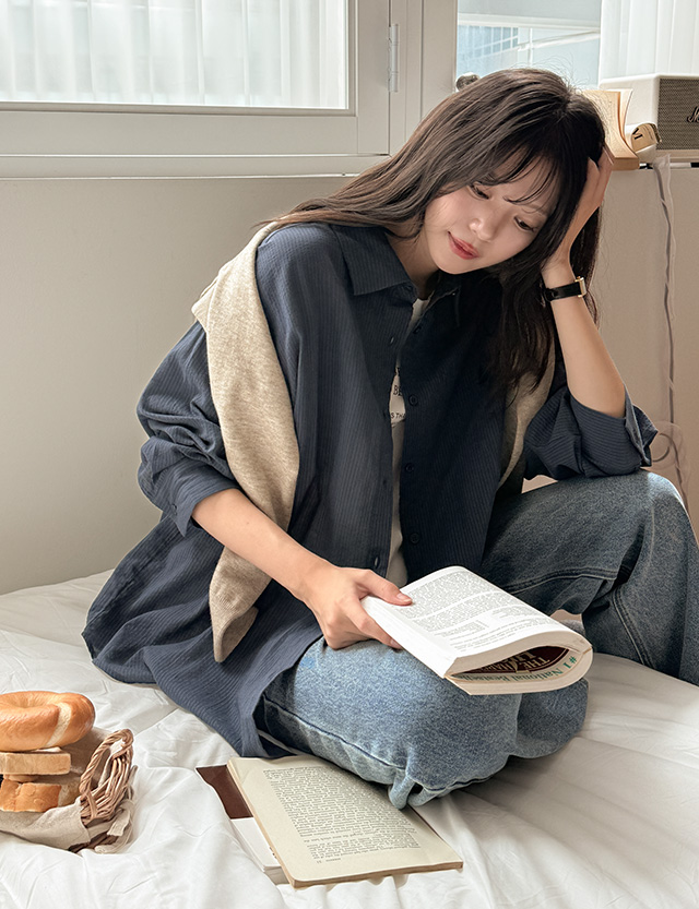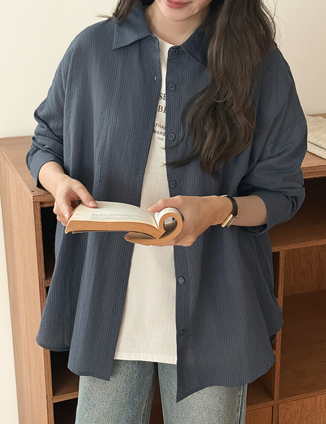 [Short-sleeve&Long-sleeve] Color 레인 loose fit Stripe Shirt 83146