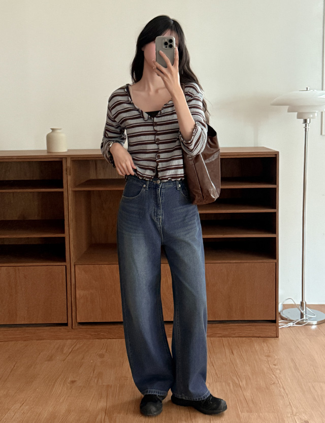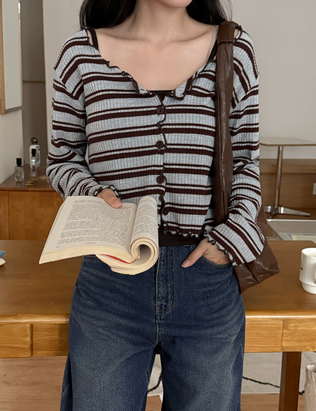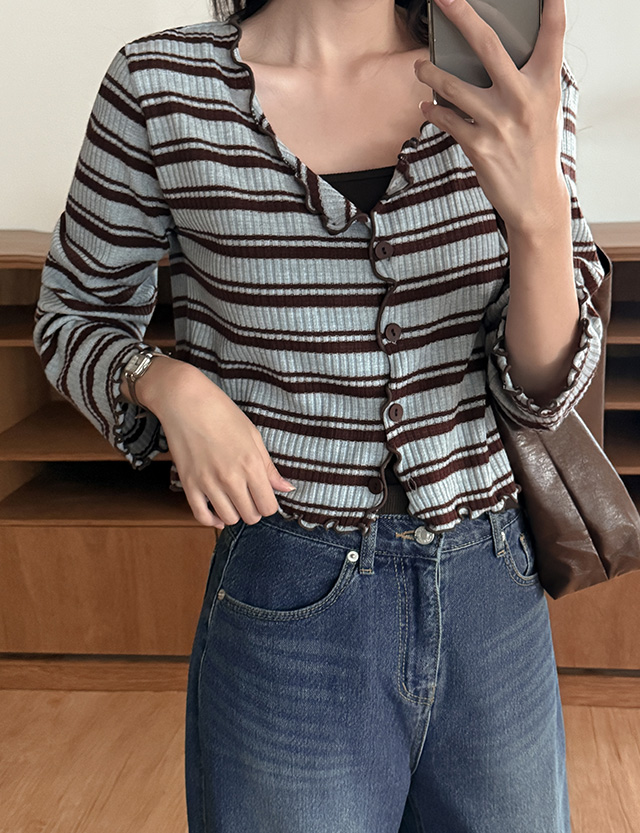 플러티 Stripe Corrugated Crop Cardigan 84059