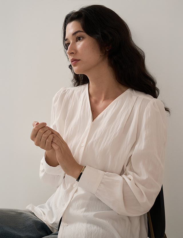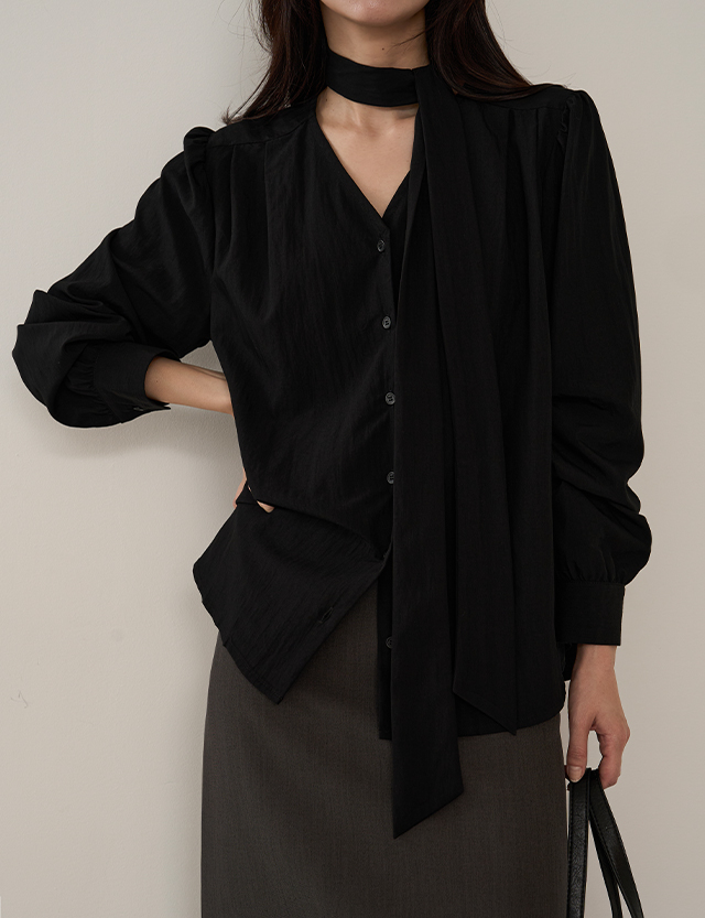 [타이탈부착] 소호 V-neck 타이 Blouse 84010