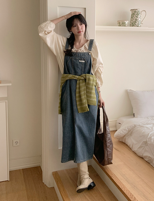 취향따라 .&Denim Shoulder strap Long One Piece 84196