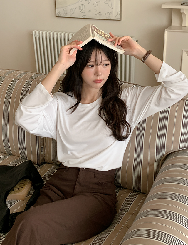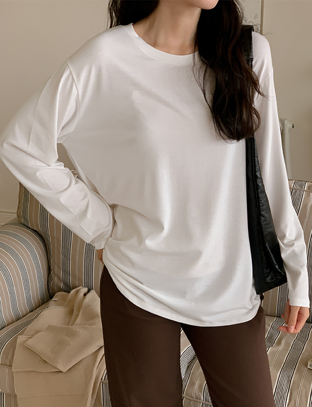 쫀득찰랑 Basic Round Long-sleeve T-shirt 84202