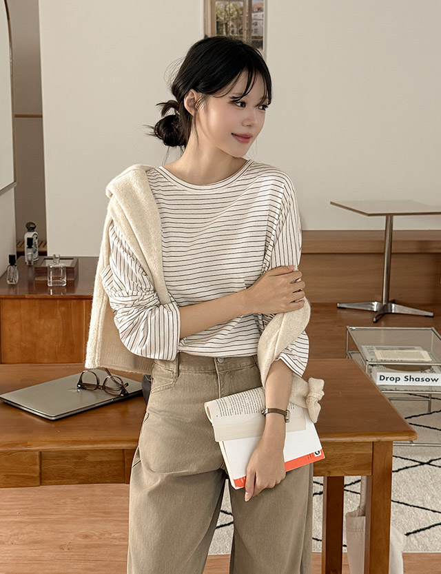 콜로미 loose fit Stripe Long-sleeve T-shirt 84051