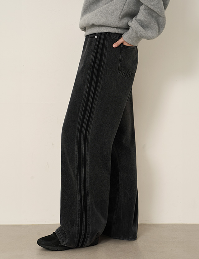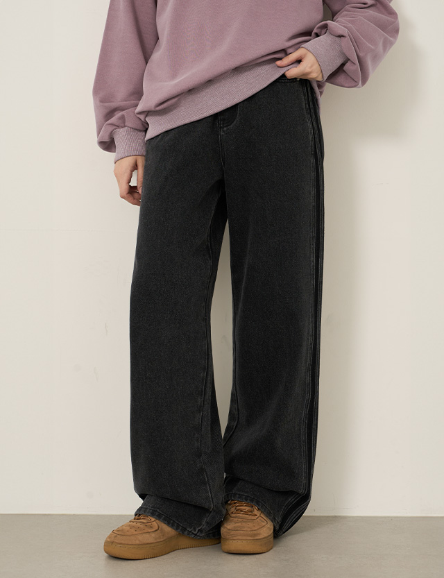 키샤 . 흑청 . 트랙 Denim Pants 84373