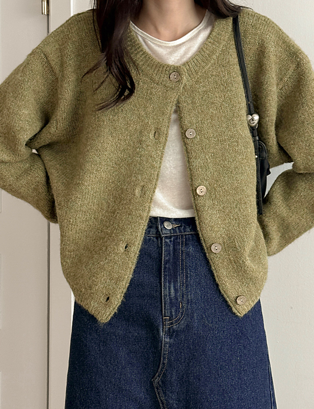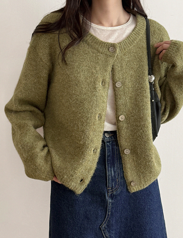 눈이가요 Raund neck loose fit Wool Cardigan 84460