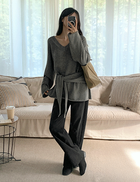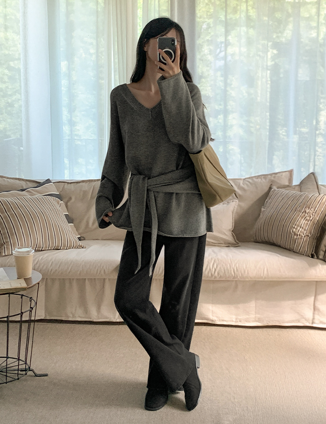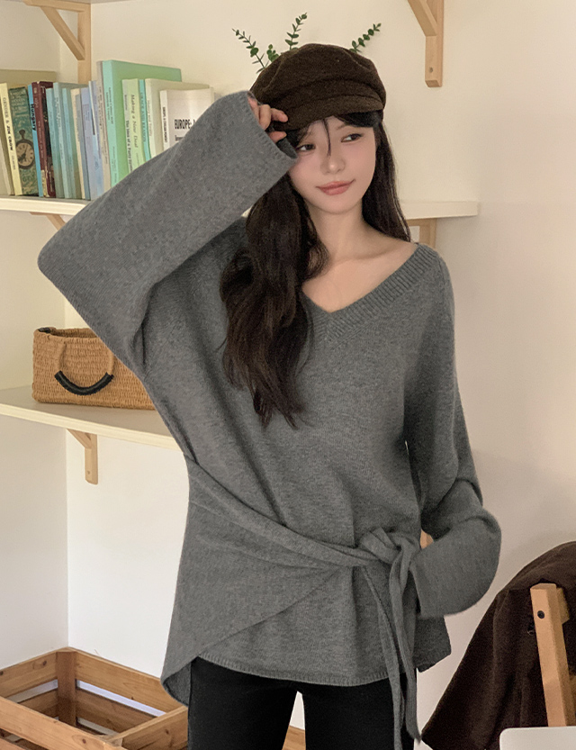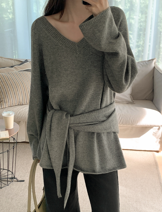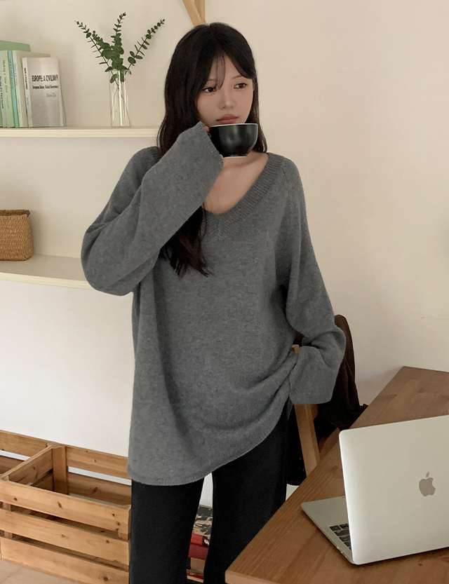 포이안 loose fit V-neck . Knit 84338