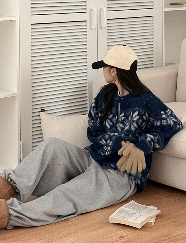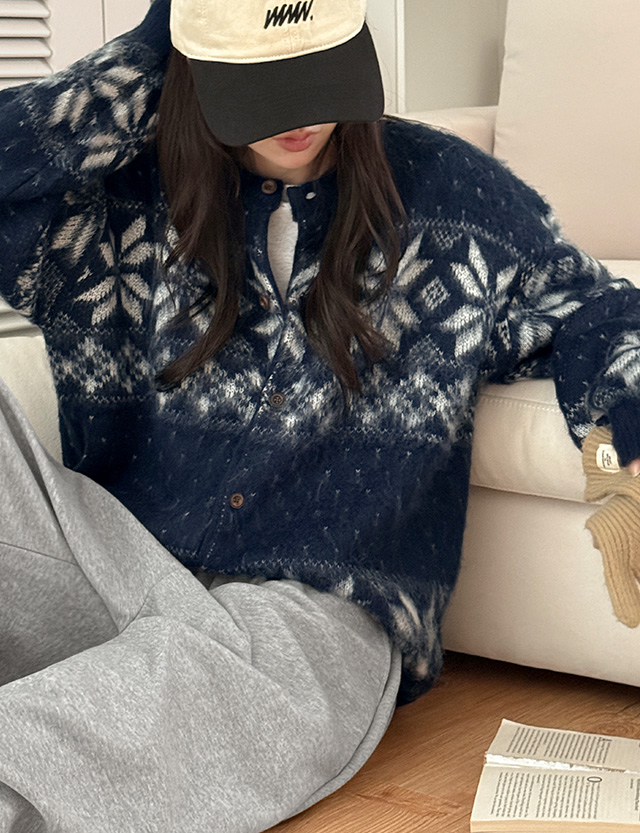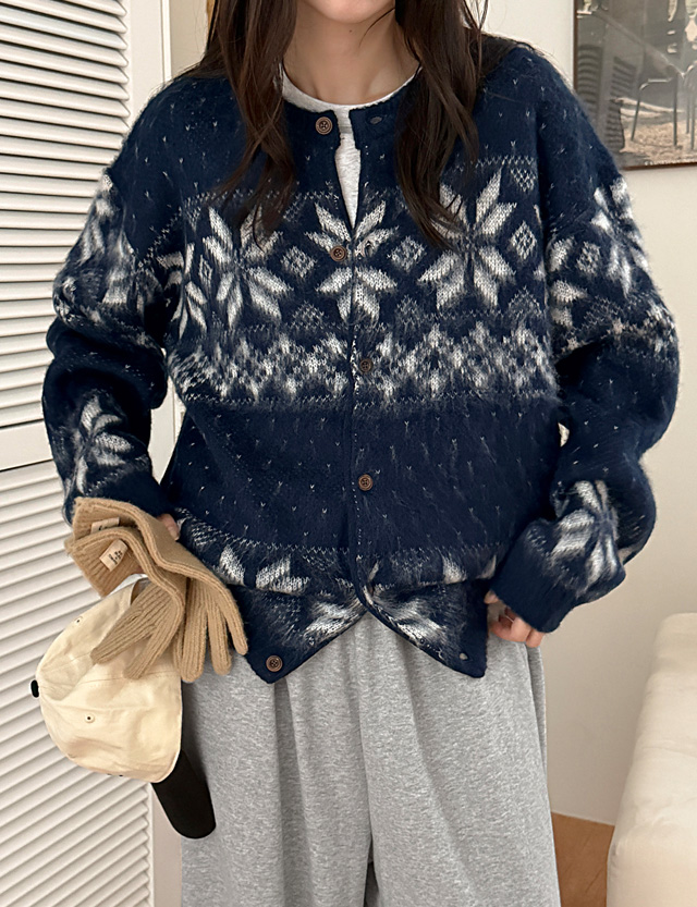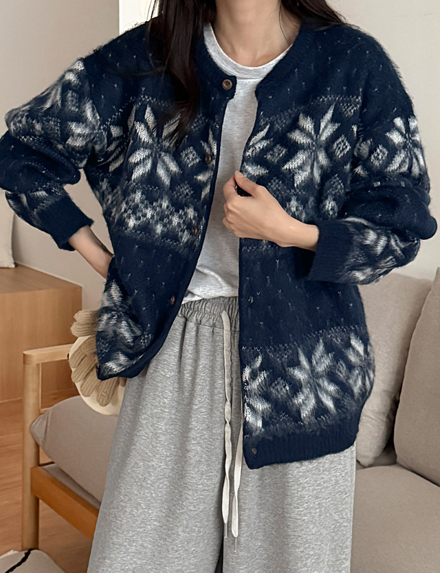 퐁실퐁실 snowflake loose fit Cardigan 84468
