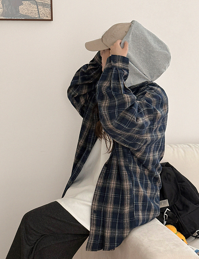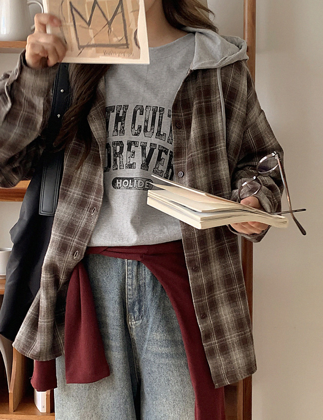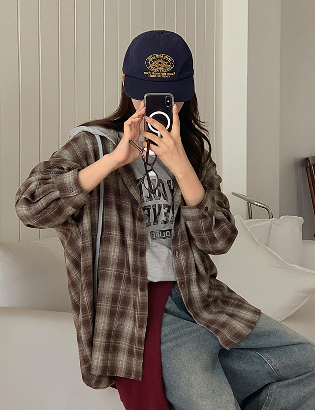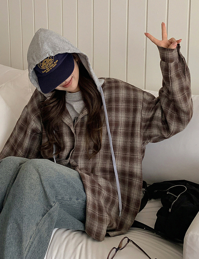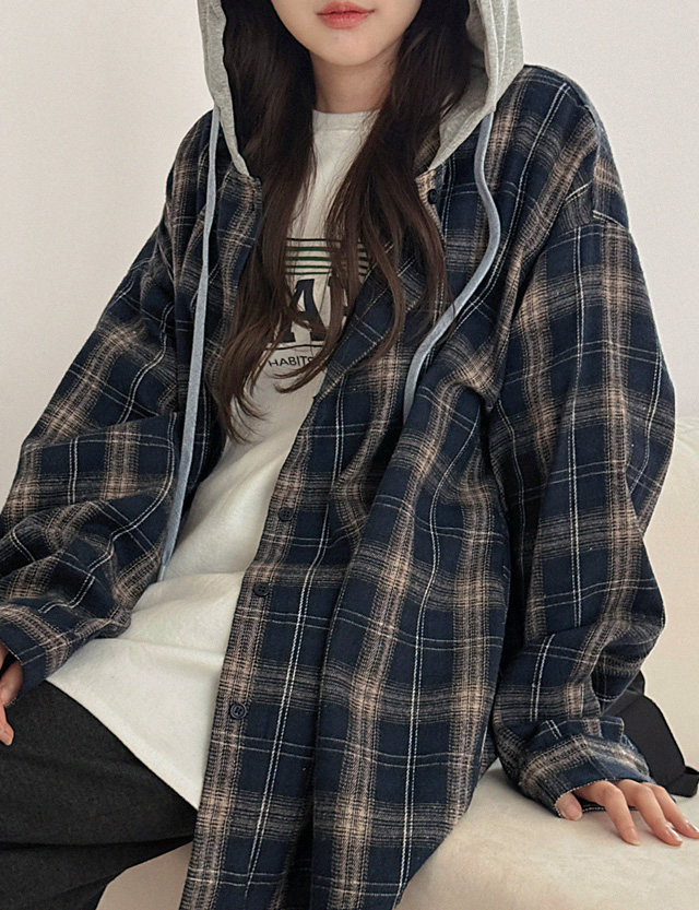 글룩 리얼루즈핏 color combination Hood Check Shirt 84242