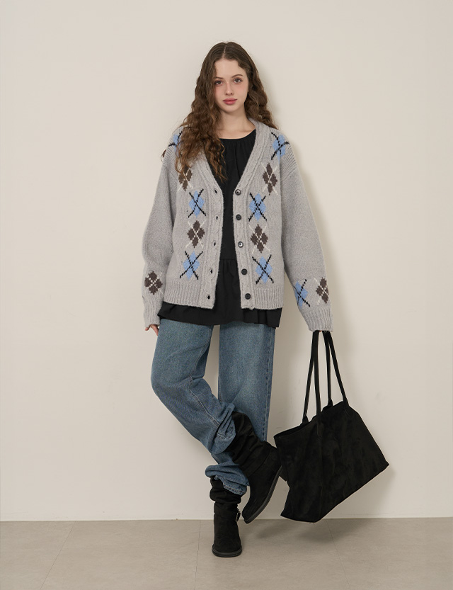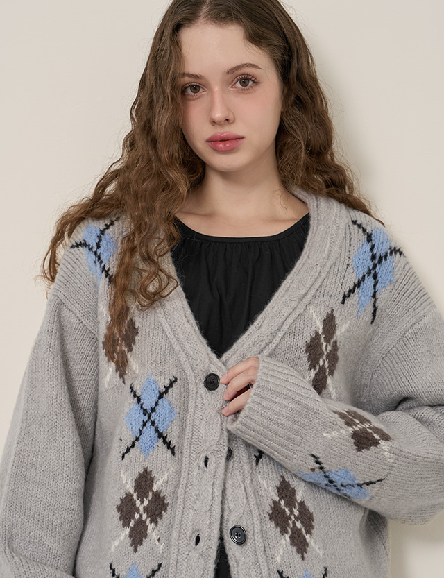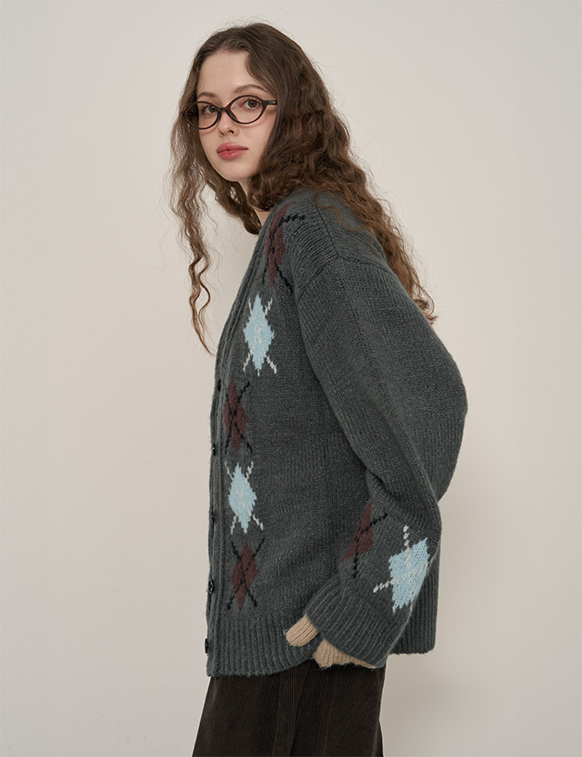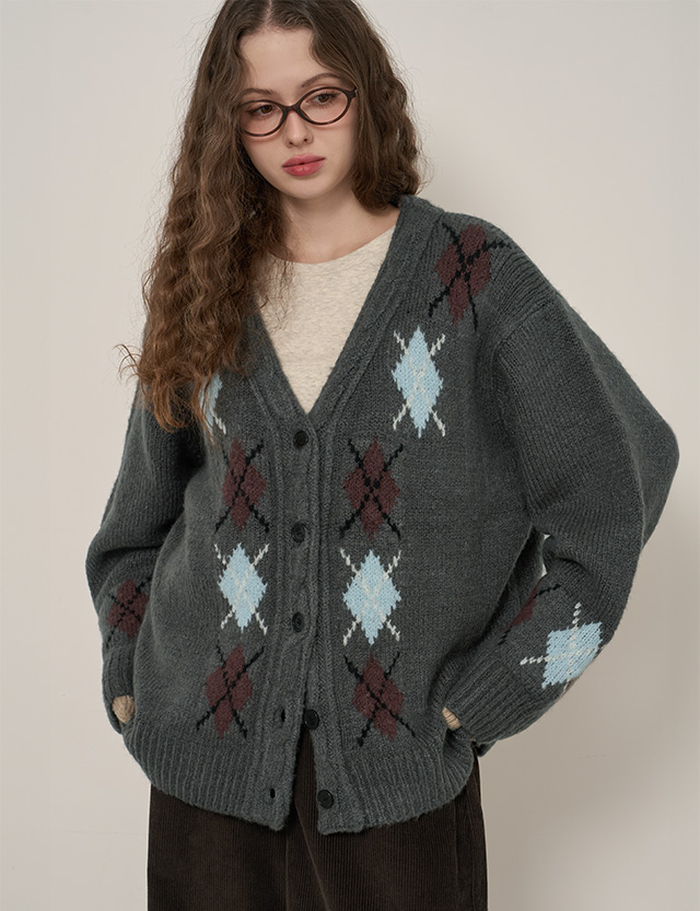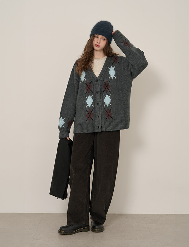 디프런 아가일 loose fit V-neck Wool Knit Cardigan 84637
