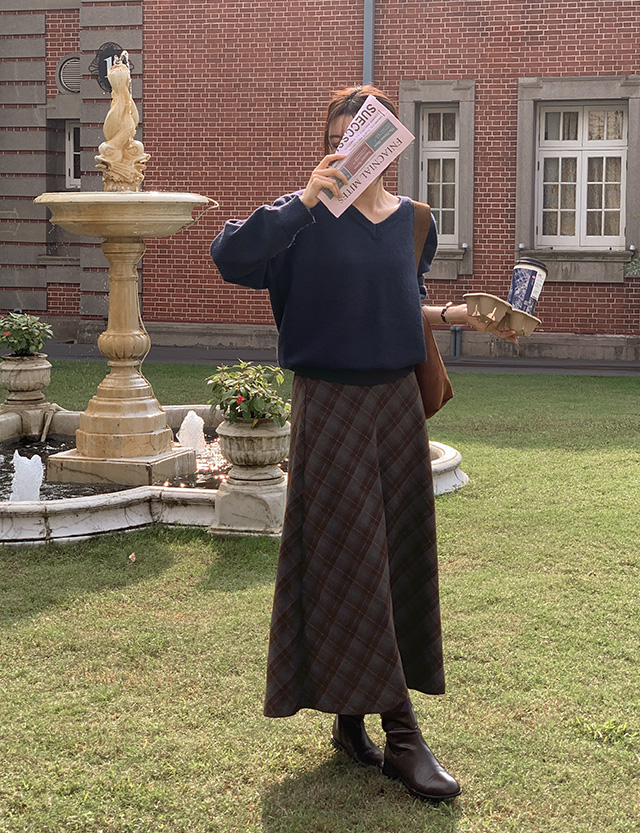 마이블루 미디앤롱 Check Flare Skirt 84751