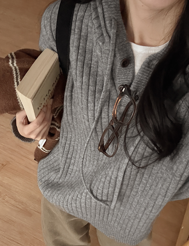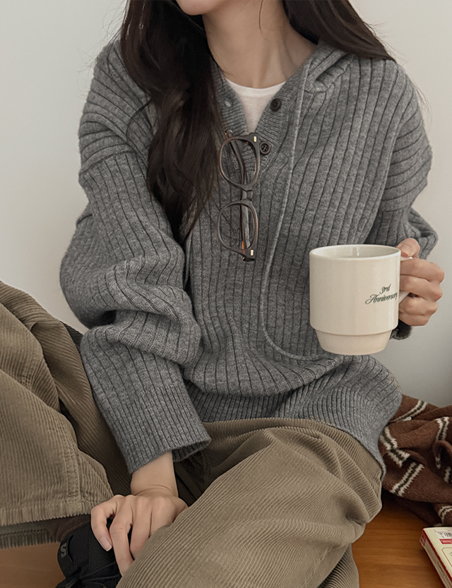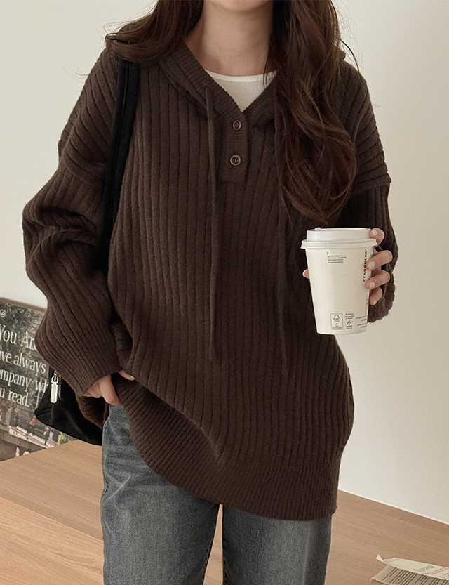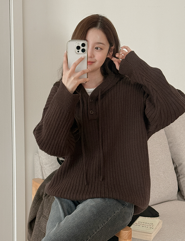 재퍼 loose fit 반오픈 Hood Knit 84960