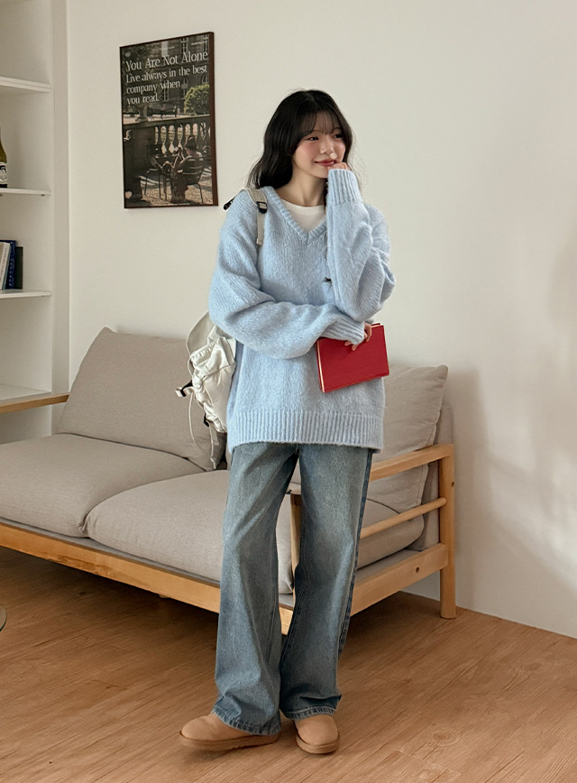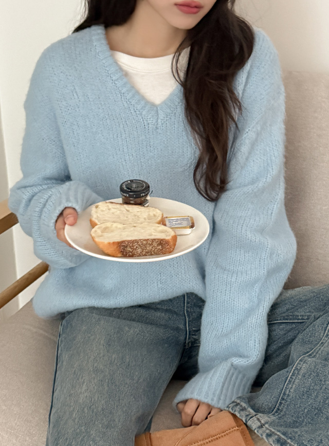 Brush loose fit V-neck Knit 84891