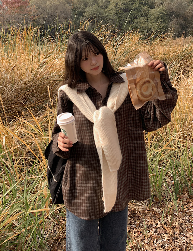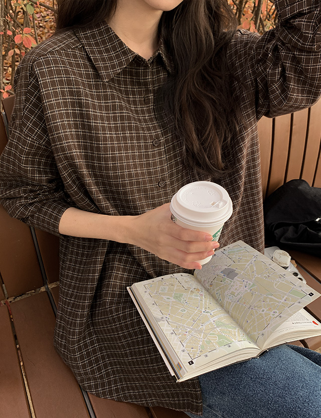 퍼지 loose fit Check napping Shirt 85045