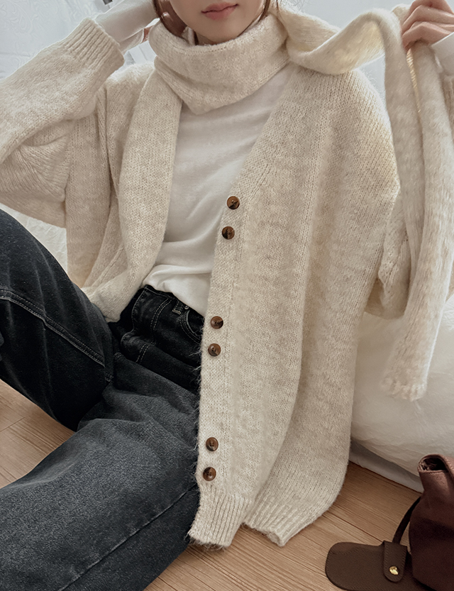 [목도리 Set] 러비덥 V-neck loose fit Wool Cardigan 85090