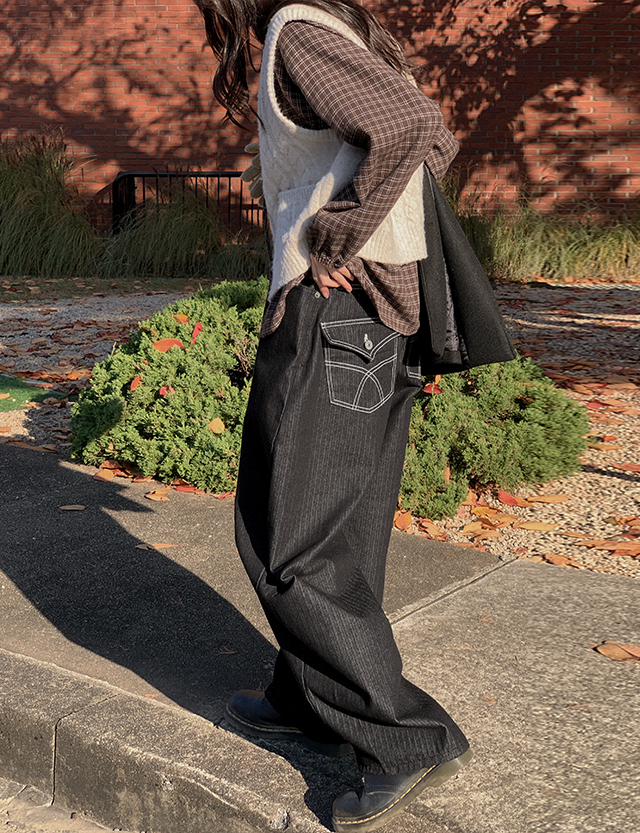 멜루비 Stripe 벌룬핏 속기모 . 포켓 Pants 85096