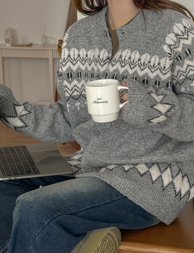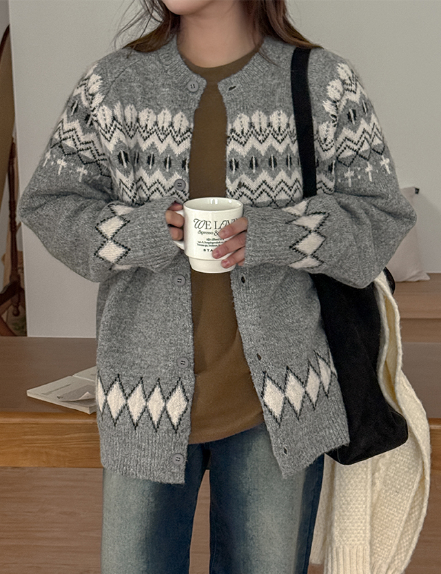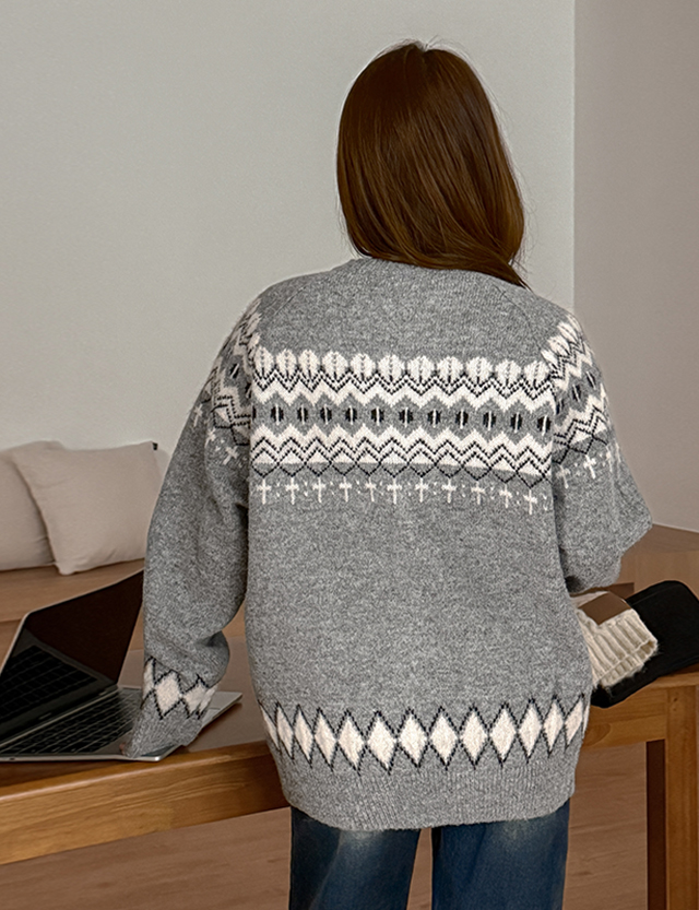 센르 loose fit Nordic Wool Knit Cardigan 85271