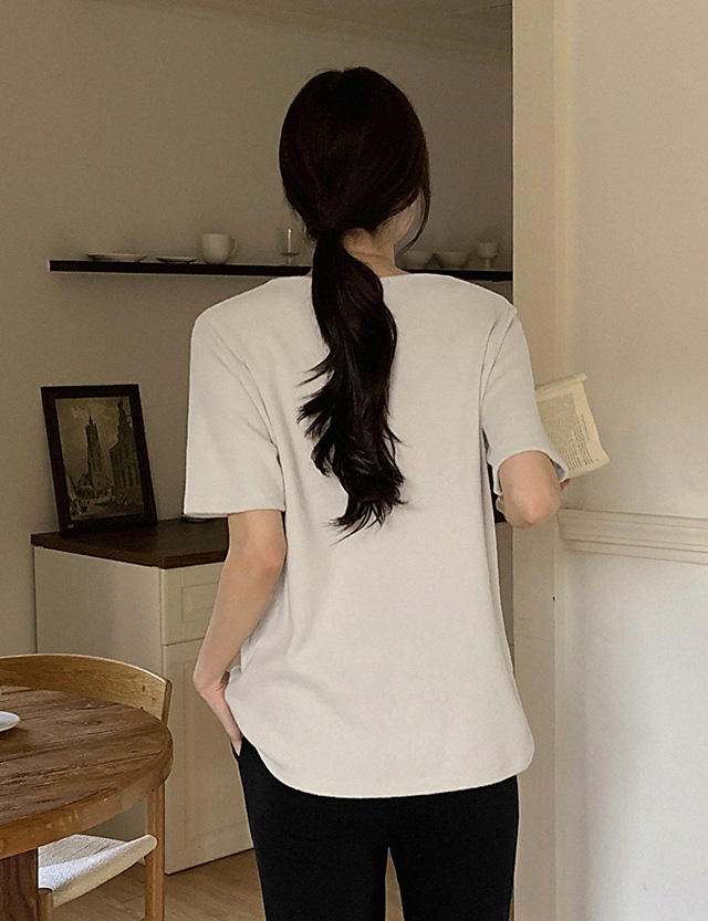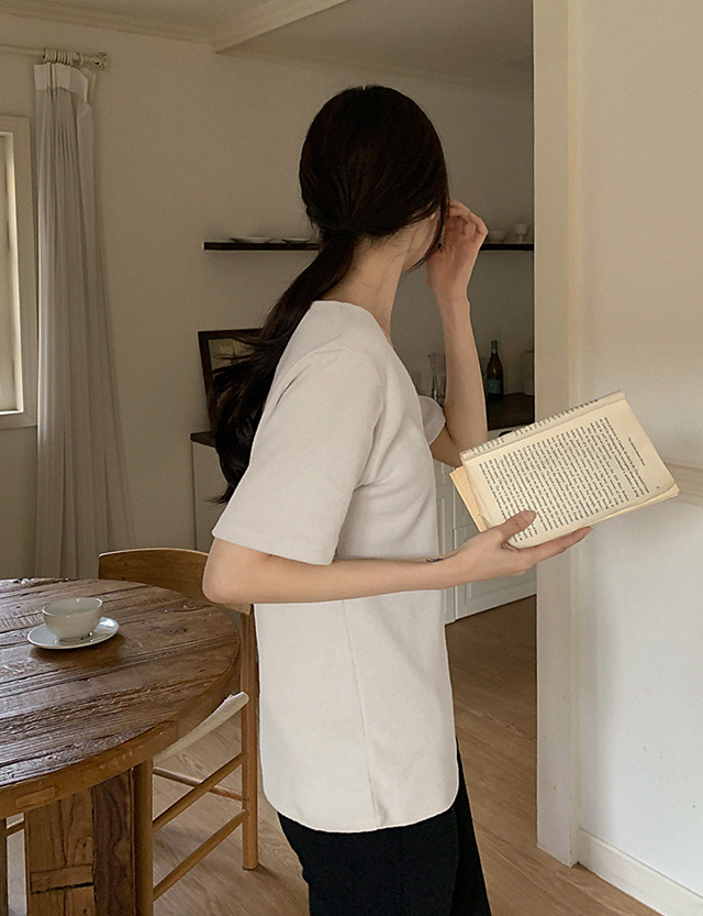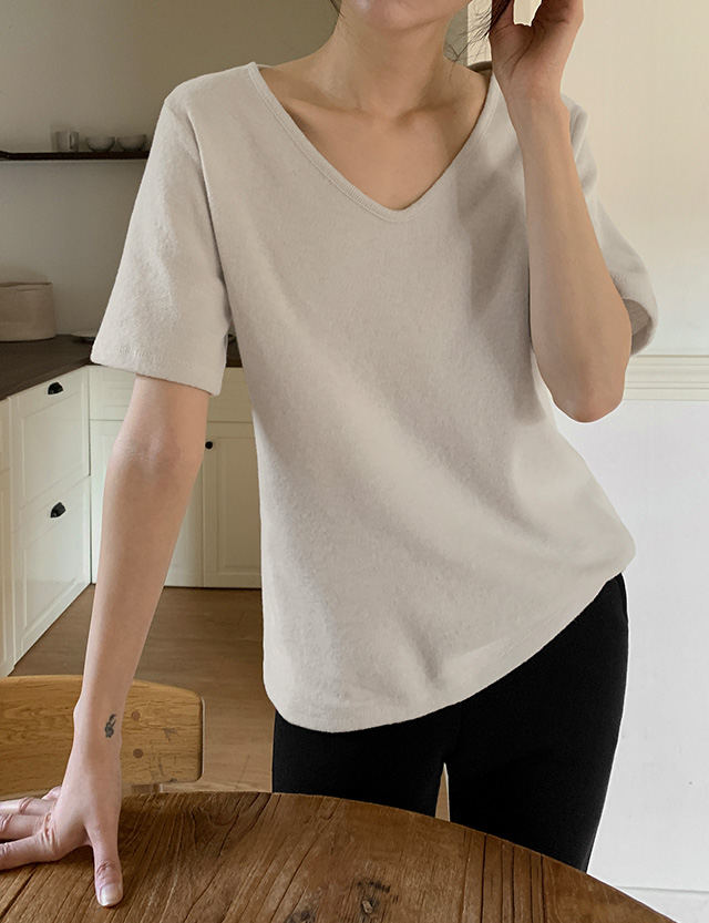 보송 V-neck napping Short-sleeve T-shirt 85279