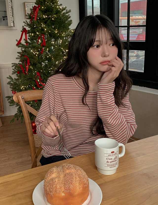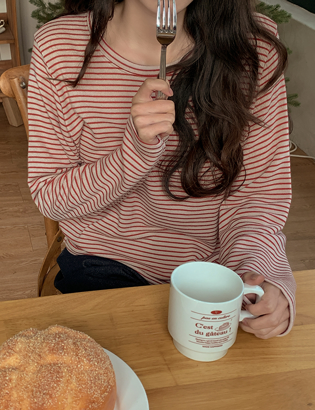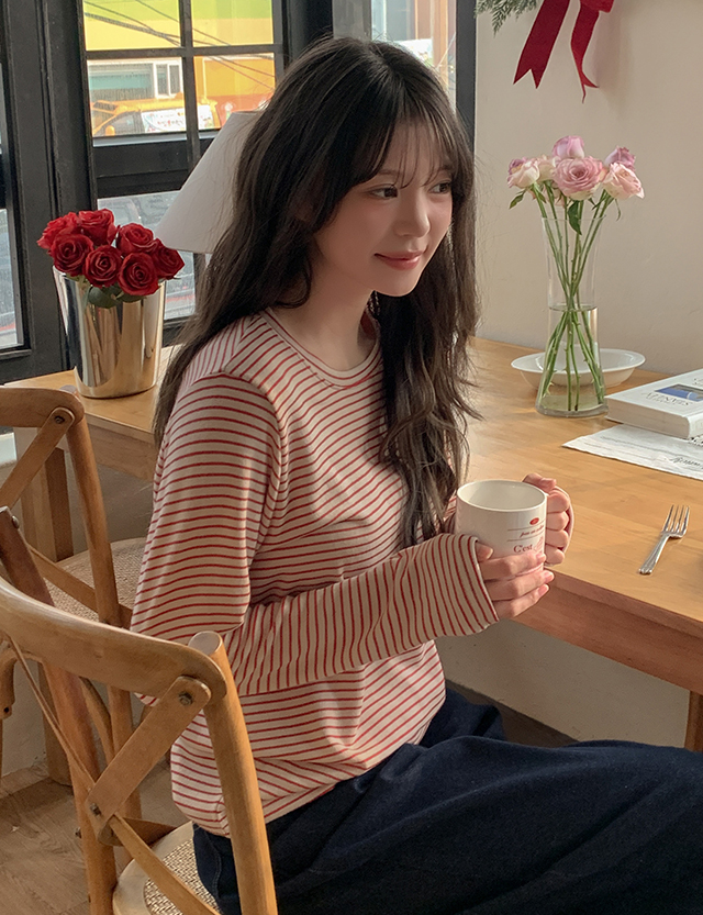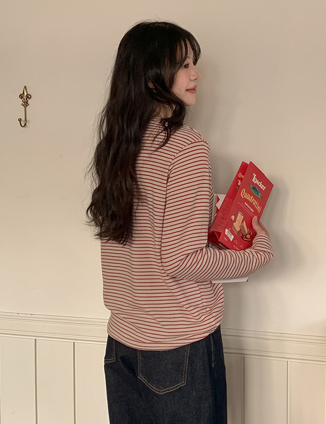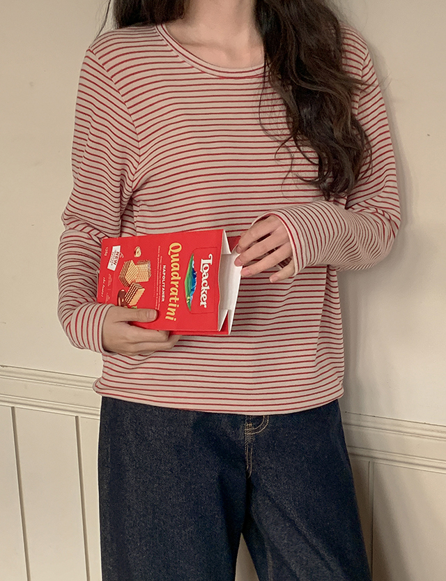 루온디 Basic napping Stripe Long-sleeve T-shirt 85364
