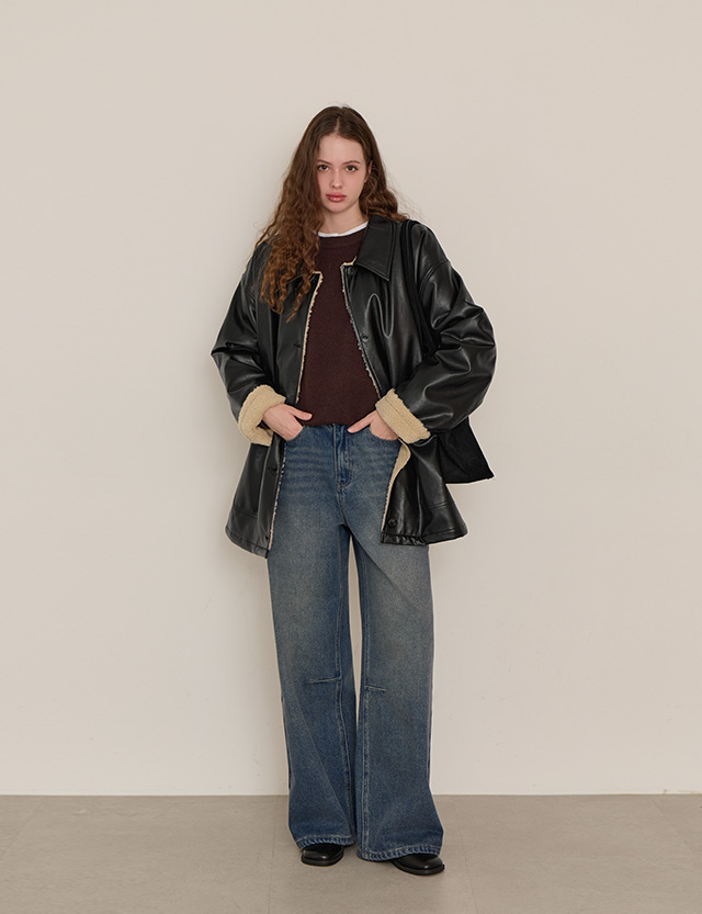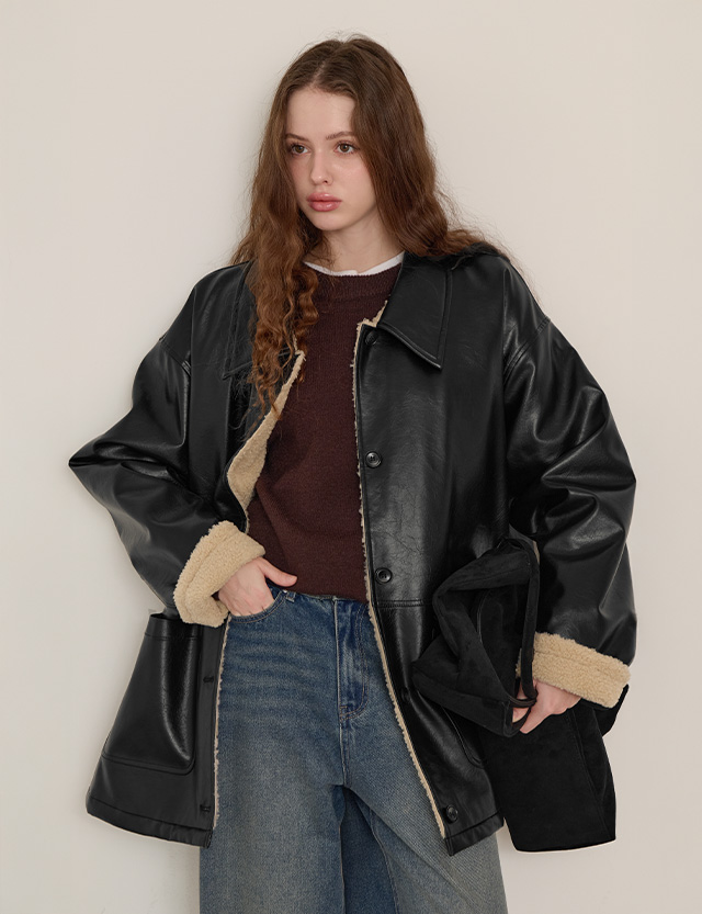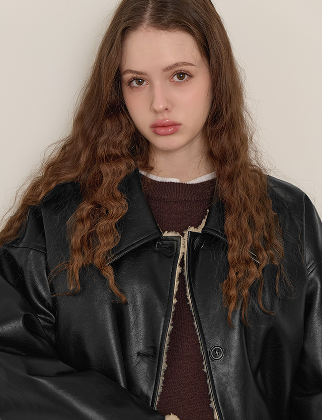 리스본 레더 quilting loose fit Harp Jacket 85318