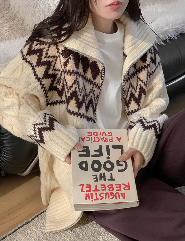 홀리넬 Nordic Patterns Wool Knit Zip up 85428