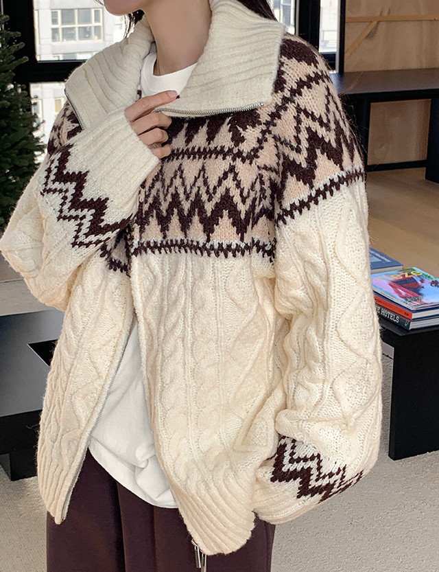 홀리넬 Nordic Patterns Wool Knit Zip up 85428
