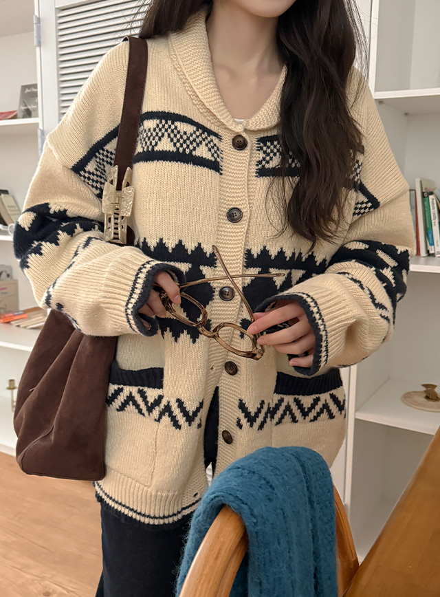 라흐니 Nordic Shawl Kara Wool Knit Cardigan 85313