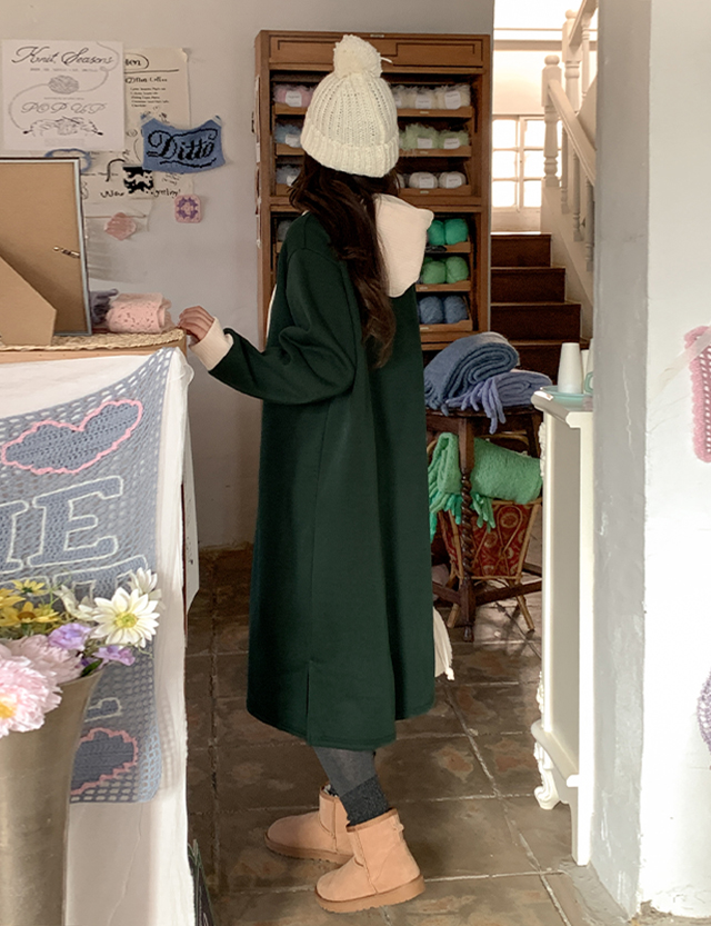 솝티 color combination Hood loose fit napping Long One Piece 85495