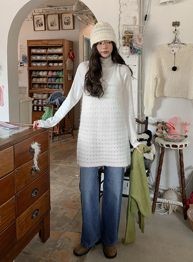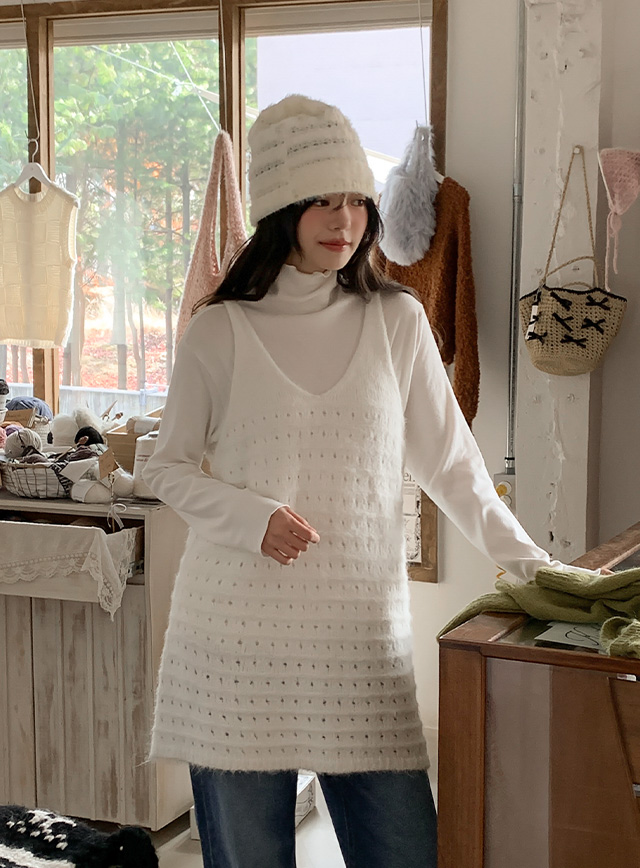 제닐 Punching layered Wool Knit One Piece 85447