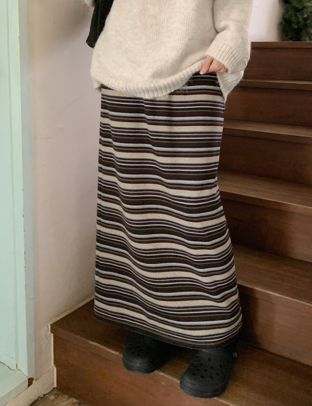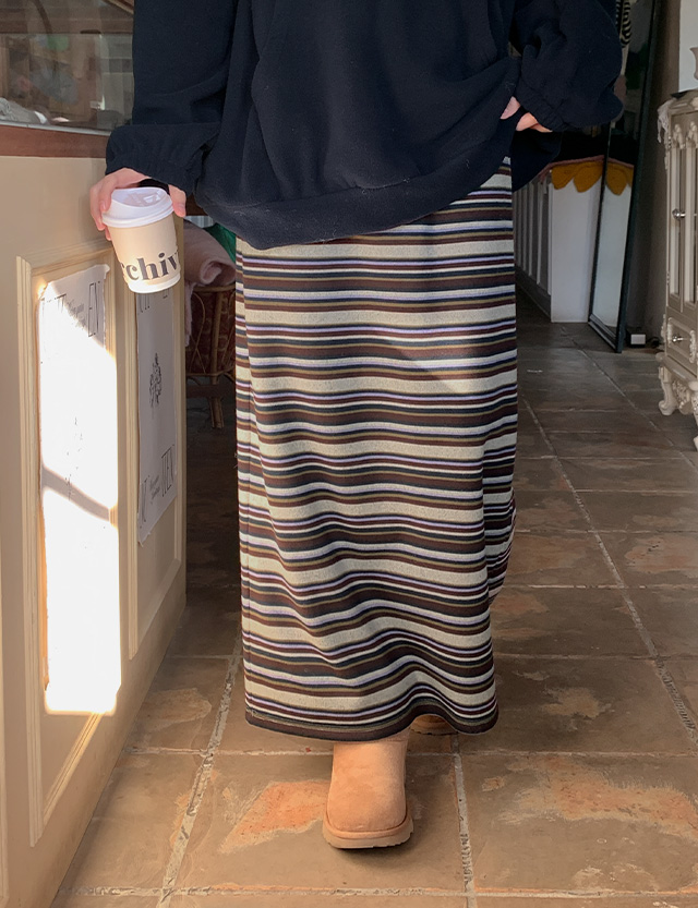 cappuccino Stripe Mink napping 맥시 Banding Skirt 85465
