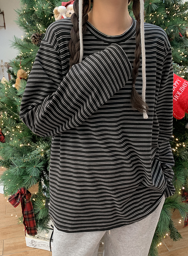 리쉬츠 Stripe napping Round Long-sleeve T-shirt 85493