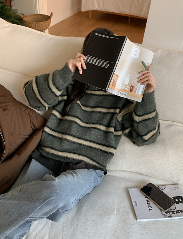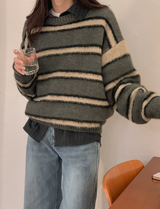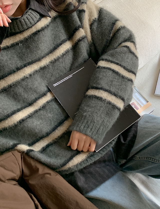 슈와빌 loose fit color combination Stripe 보슬 Wool Knit 85529