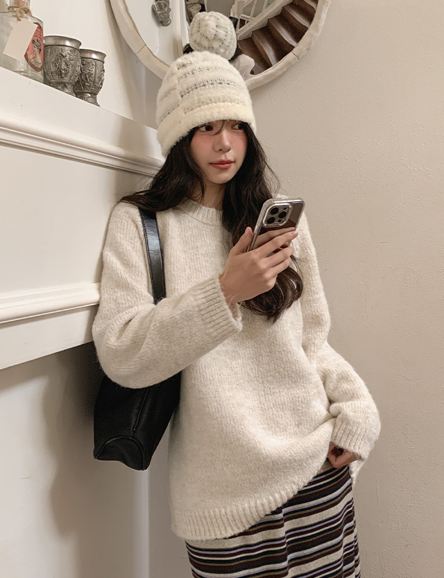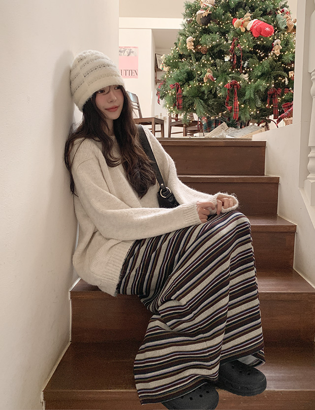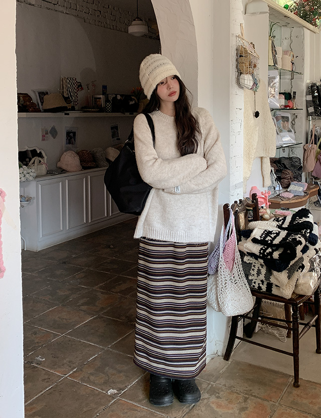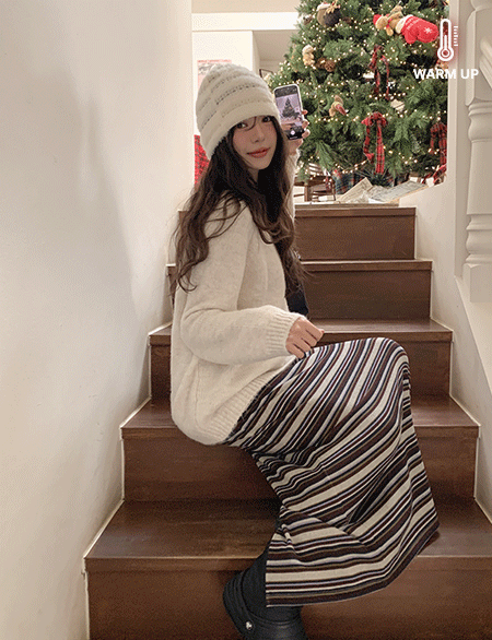 cappuccino Stripe Mink napping 맥시 Banding Skirt 85465