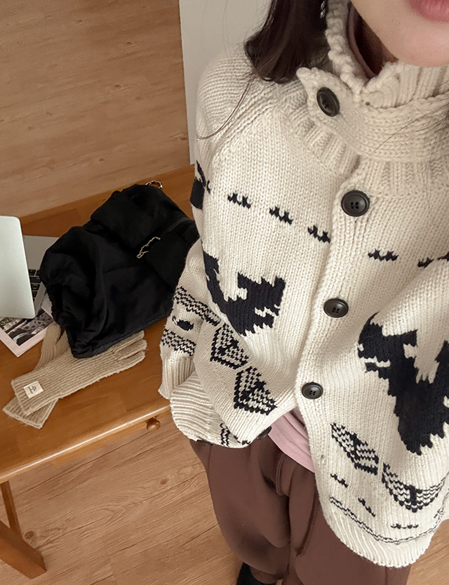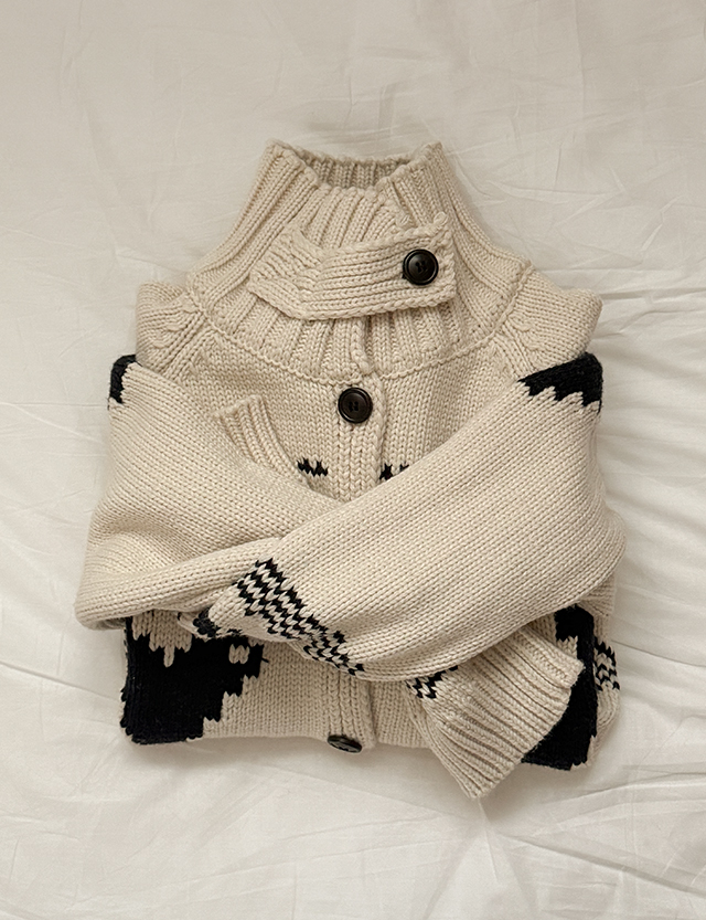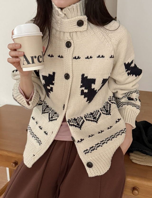 제라 Nordic Patterns Highneck Wool Knit Cardigan 85604