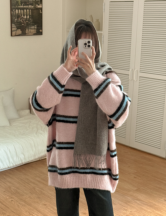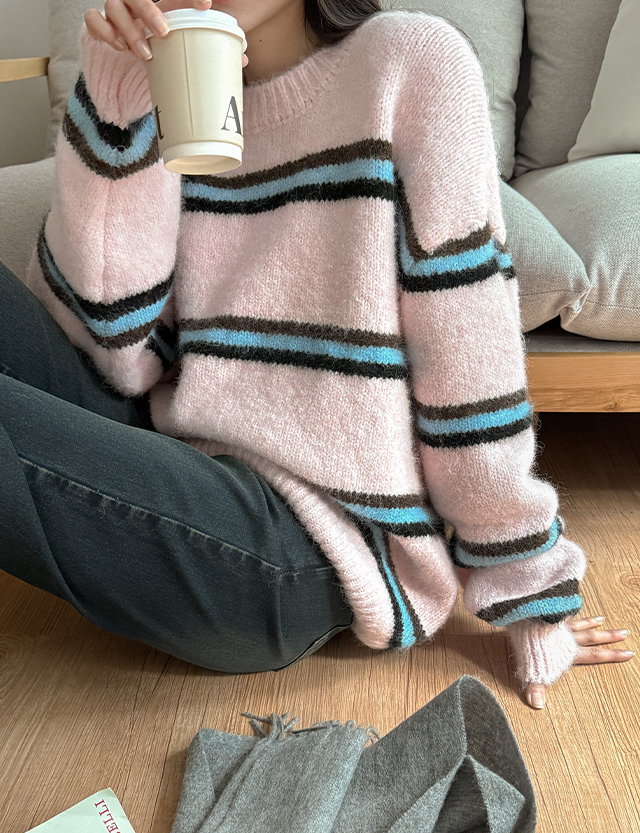 세르 컬러배색 Stripe Wool Round Knit 85705