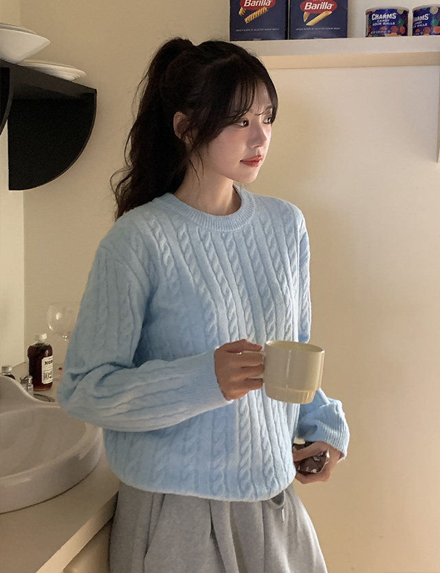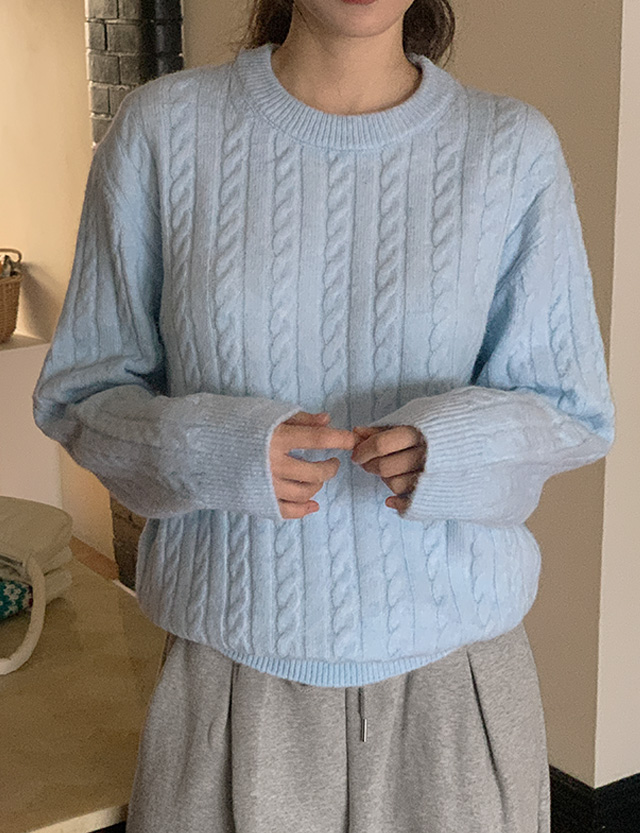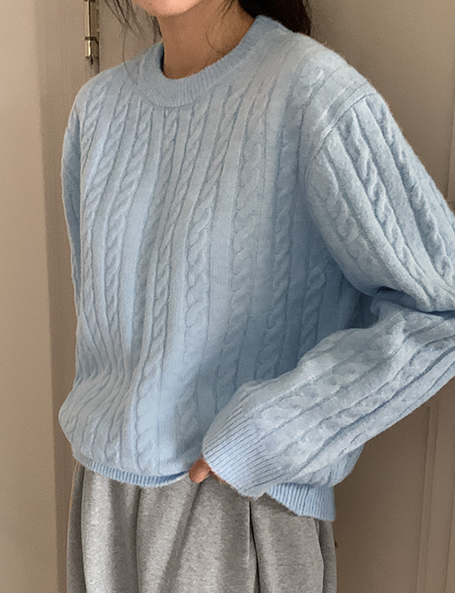 [엠디픽] 레인보우 케이블 Wool Raund neck Knit 85567