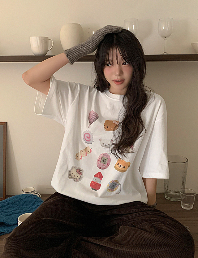 다마고치 겉기모 Raund neck Short-sleeve T-shirt 85748