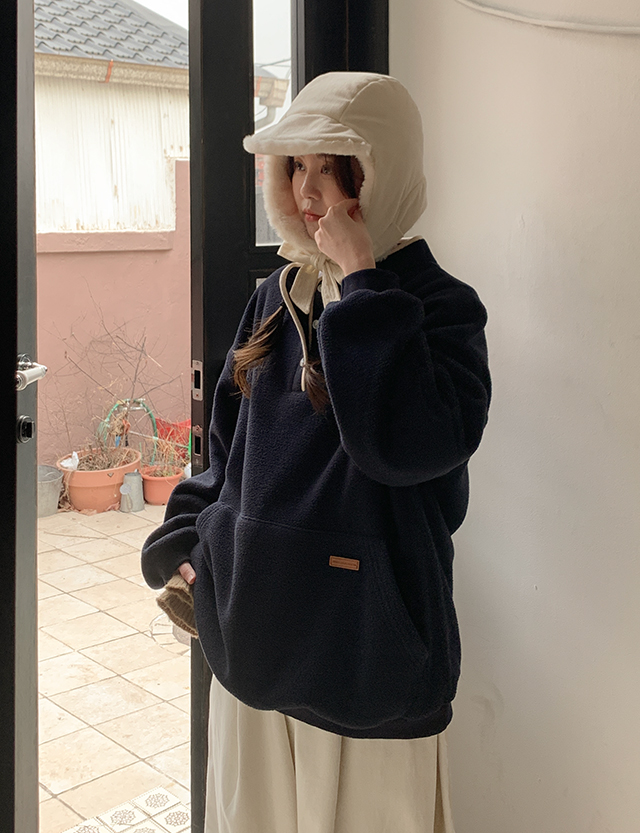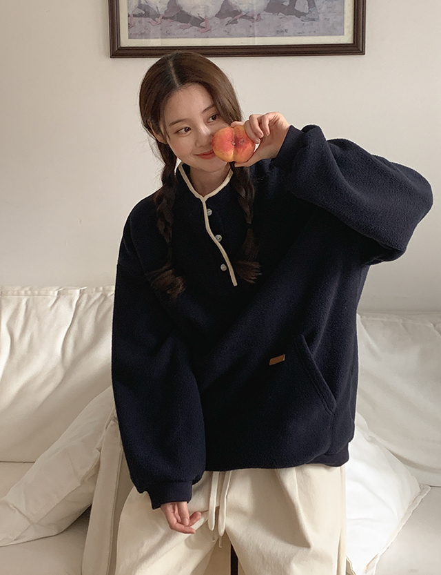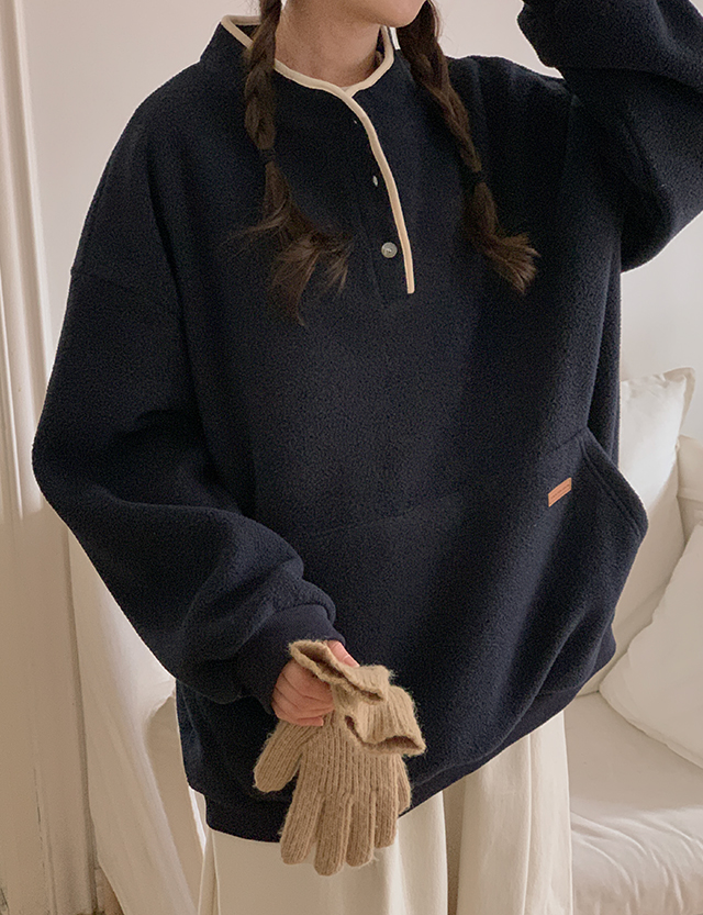 디랭크 Fleece napping 반오픈 loose fit 포켓 Man to man 85831