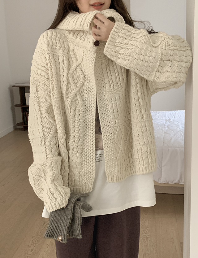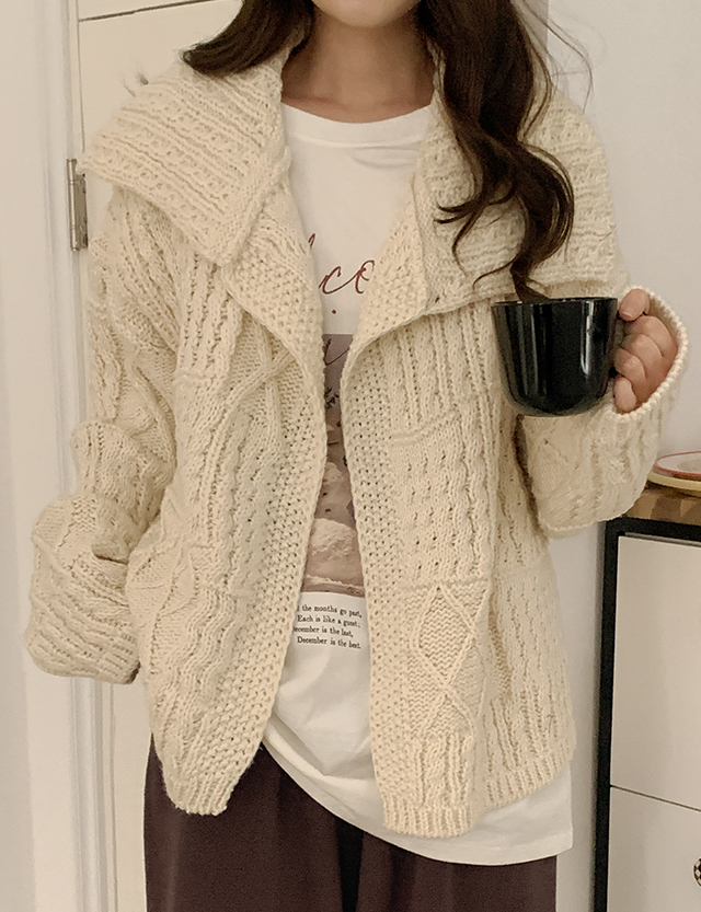 쥬리페 Wool Big Collar 케이블 . 오픈 Cardigan 85847