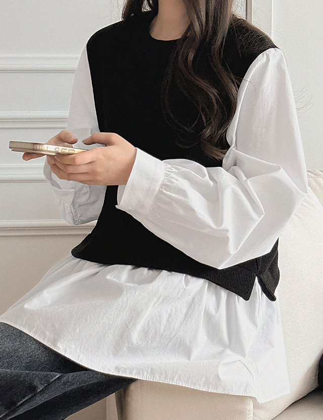 마티아 color combination layered Freel Blouse 85937