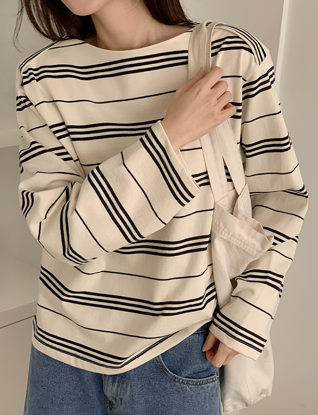 플러브 보트넥 Stripe Long-sleeve T-shirt 85956