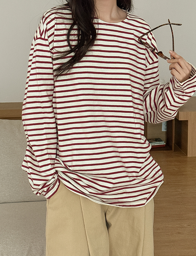드림 Stripe 보트넥 Long-sleeve T-shirt 86003