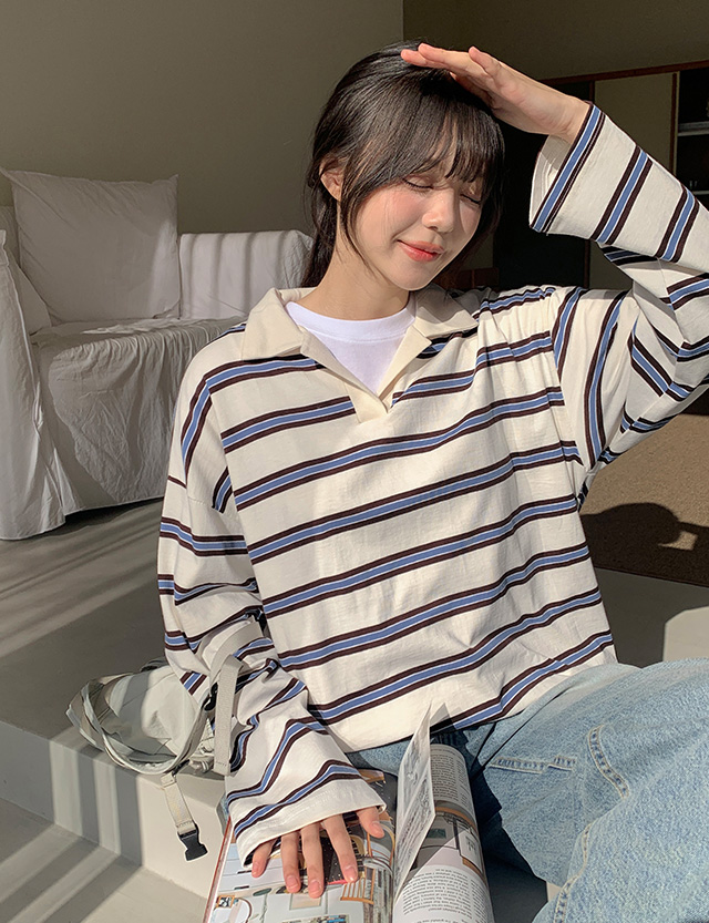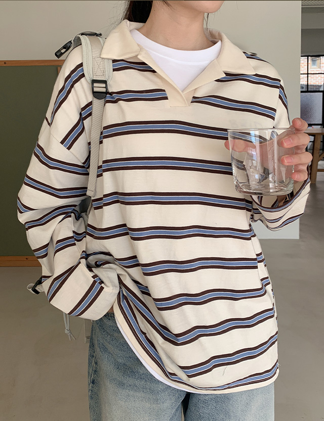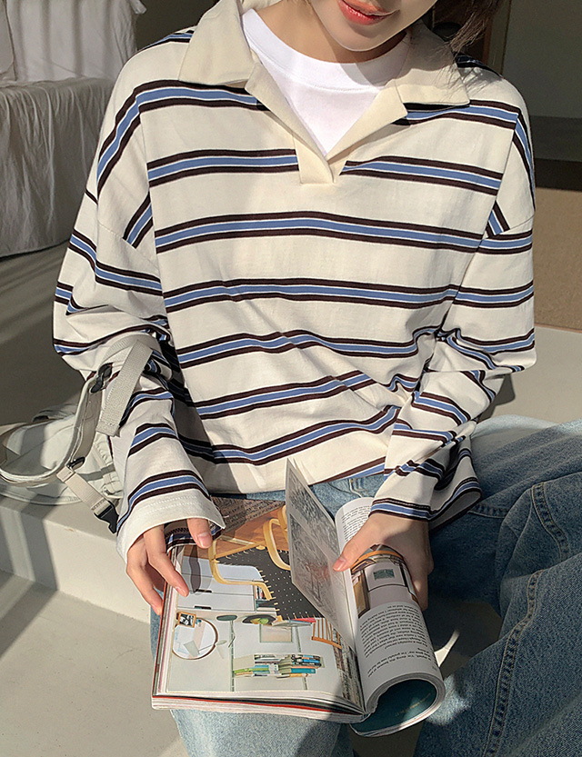키칭 color combination Stripe Kara Long-sleeve T-shirt 86019